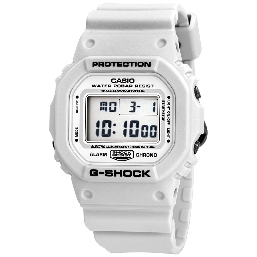 Ceasul original barbatesc Casio DW-5600MW-7CR, din colectia G-shock, face parte din categoria ceasurilor Sport. Mecanismul ceasului este unul quartz, adapostit de o carcasa de forma dreptunghiulara, cu capac opac. Carcasa ceasului este din otel inoxidabil și are culoarea alb. Latimea carcasei este de 43 mm, lungimea de 43 mm, iar grosimea de 13 mm. Ceasul Casio DW-5600MW-7CR are curea de silicon de culoare alb si cadranul digital de culoare alb, acoperit de un geam din cristal mineral. Rezistent la apa pana la o adancime de 200 m (20 atm), ceasul dispune de urmatoarele functii: ora, minut, secunda. tara de origine a mecanismului este Japonia.