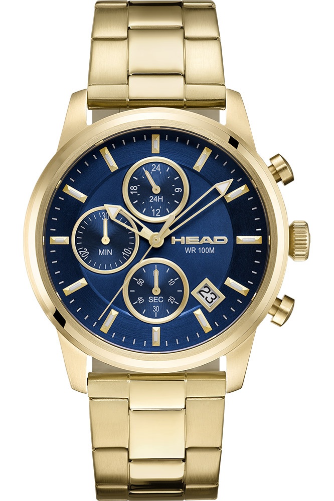 Ceasul original barbatesc Head HE-004-05, din colectia Match Point, face parte din categoria ceasurilor Casual. Mecanismul ceasului este unul quartz, adapostit de o carcasa de forma rotunda, cu capac opac. Carcasa ceasului este din otel inoxidabil și are culoarea . Diametrul carcasei este de 42 mm, iar grosimea de 11 mm. Ceasul Head HE-004-05 are bratara de otel inoxidabil de culoare auriu si cadranul analog de culoare albastru, acoperit de un geam din cristal mineral. Rezistent la apa pana la o adancime de 100 m (10 atm), ceasul dispune de urmatoarele functii: data, ora, minut, secunda, cronograf.