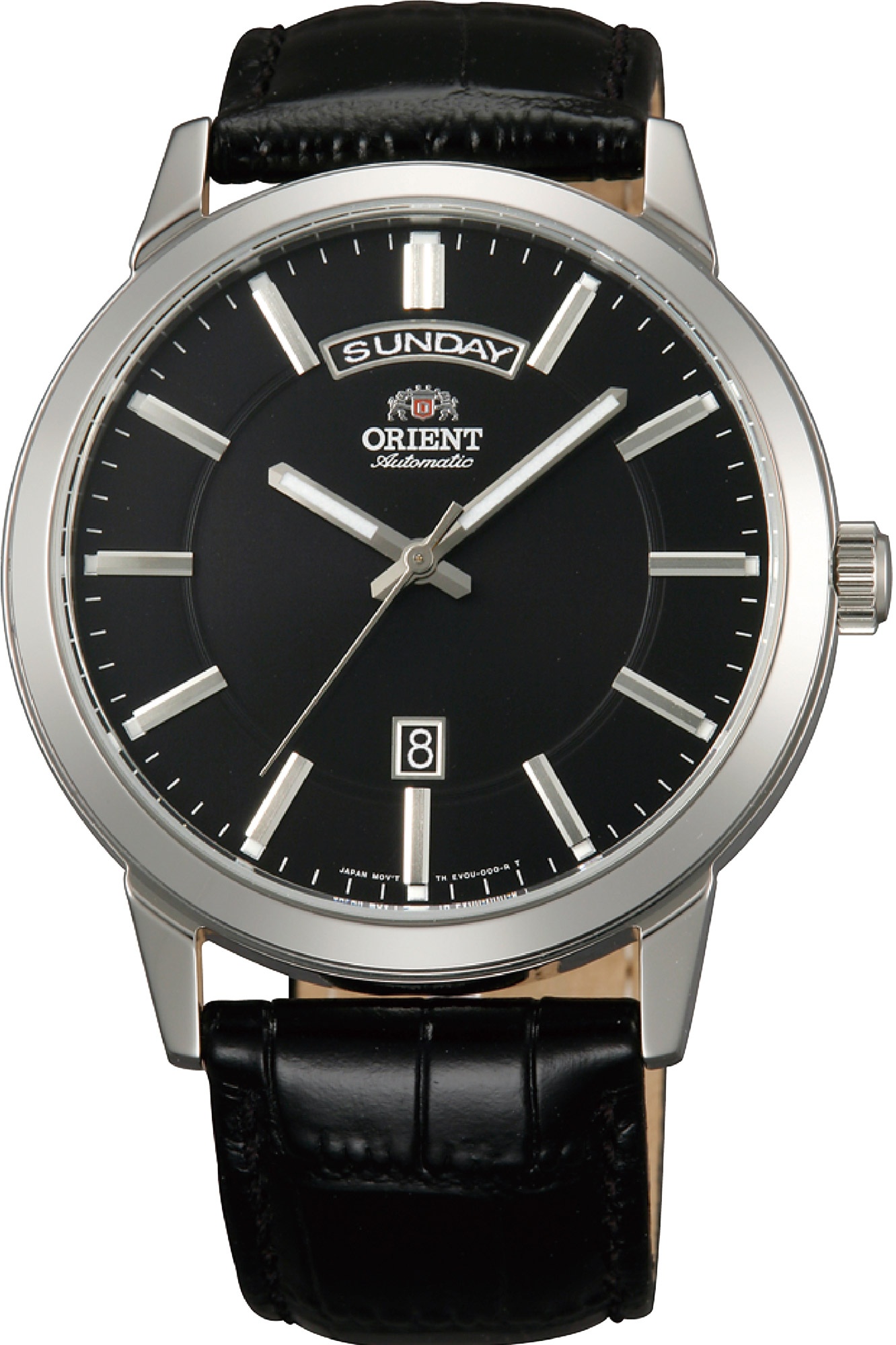 Ceasul original barbatesc Orient FEV0U003BH, din colectia Contemporary, face parte din categoria ceasurilor Casual. Mecanismul ceasului este unul automatic, adapostit de o carcasa de forma rotunda, cu capac schelet (transparent). Carcasa ceasului este din otel inoxidabil și are culoarea argintiu. Diametrul carcasei este de 42 mm, iar grosimea de 11 mm. Ceasul Orient FEV0U003BH are curea de piele de culoare negru si cadranul analogic de culoare negru, acoperit de un geam din cristal mineral. Rezistent la apa pana la o adancime de 50 m (5 atm), ceasul dispune de urmatoarele functii: data, zi, ora, minut, secunda. tara de origine a mecanismului este Japonia.