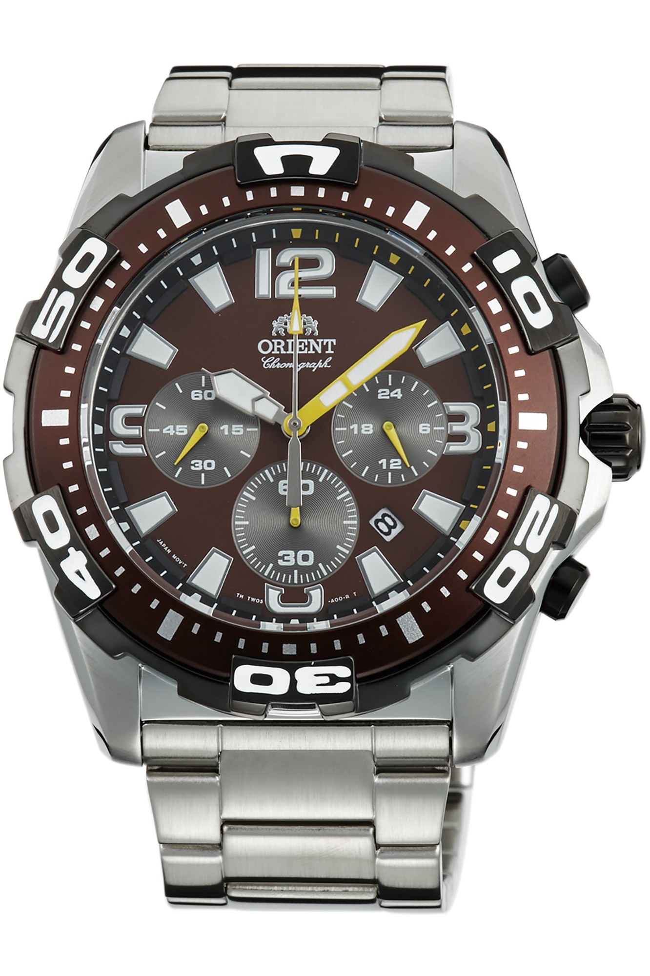 Ceasul original barbatesc Orient FTW05002T0, din colectia Sports, face parte din categoria ceasurilor Sport. Mecanismul ceasului este unul quartz, adapostit de o carcasa de forma rotunda, cu capac opac. Carcasa ceasului este din otel inoxidabil și are culoarea argintiu. Diametrul carcasei este de 45 mm, iar grosimea de 14 mm. Ceasul Orient FTW05002T0 are bratara de otel inoxidabil de culoare argintiu si cadranul analogic de culoare maro, acoperit de un geam din cristal mineral. Rezistent la apa pana la o adancime de 100 m (10 atm), ceasul dispune de urmatoarele functii: data, ora, minut, secunda. tara de origine a mecanismului este Japonia.
