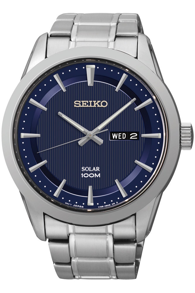 Ceasul original barbatesc Seiko SNE361P1, din colectia Solar, face parte din categoria ceasurilor Casual. Mecanismul ceasului este unul solar, adapostit de o carcasa de forma rotunda, cu capac opac. Carcasa ceasului este din otel inoxidabil și are culoarea . Diametrul carcasei este de 44 mm, iar grosimea de 11 mm. Ceasul Seiko SNE361P1 are bratara de otel inoxidabil de culoare argintiu si cadranul analog de culoare albastru, acoperit de un geam din cristal mineral. Rezistent la apa pana la o adancime de 100 m (10 atm), ceasul dispune de urmatoarele functii: data, zi, ora, minut, secunda.