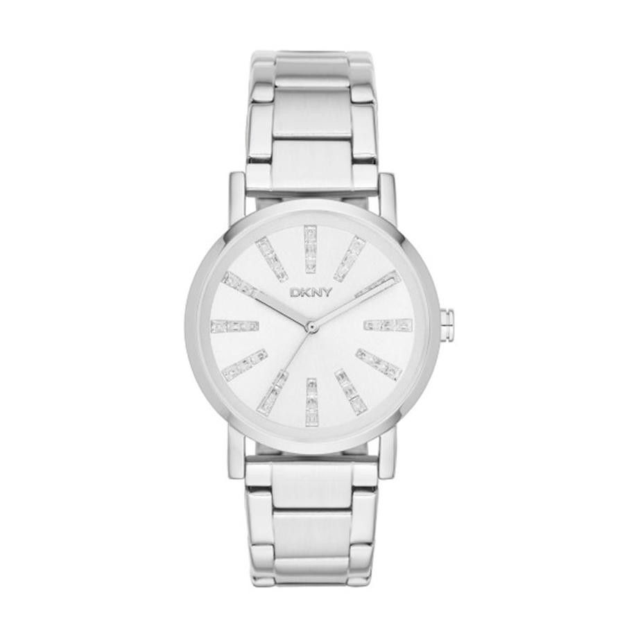 Ceasul original de dama DKNY NY2416, din colectia SoHo, face parte din categoria ceasurilor Elegant. Mecanismul ceasului este unul quartz, adapostit de o carcasa de forma rotunda, cu capac opac. Diametrul carcasei este de 38 mm, iar grosimea de 11 mm. Ceasul DKNY NY2416 are bratara de otel inoxidabil si cadranul analog, acoperit de un geam din cristal mineral. Rezistent la apa pana la o adancime de 50 m (5 atm), ceasul dispune de urmatoarele functii: ora, minut, secunda.