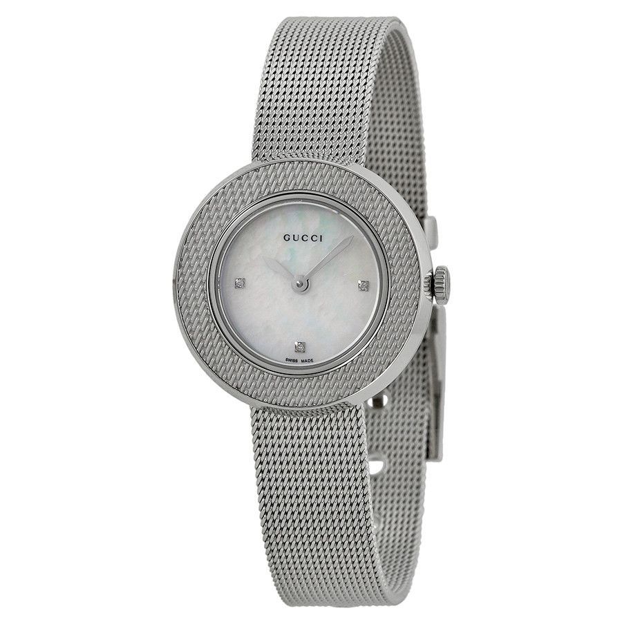 Ceasul original de dama Gucci YA129517, din colectia U-Play, face parte din categoria ceasurilor Elegant. Mecanismul ceasului este unul quartz, adapostit de o carcasa de forma rotunda, cu capac opac. Diametrul carcasei este de 27 mm, iar grosimea de 7 mm. Ceasul Gucci YA129517 are bratara de otel inoxidabil si cadranul analog, acoperit de un geam din safir. Rezistent la apa pana la o adancime de 30 m (3 atm), ceasul dispune de urmatoarele functii: ora, minut. tara de origine a mecanismului este Elvetia.