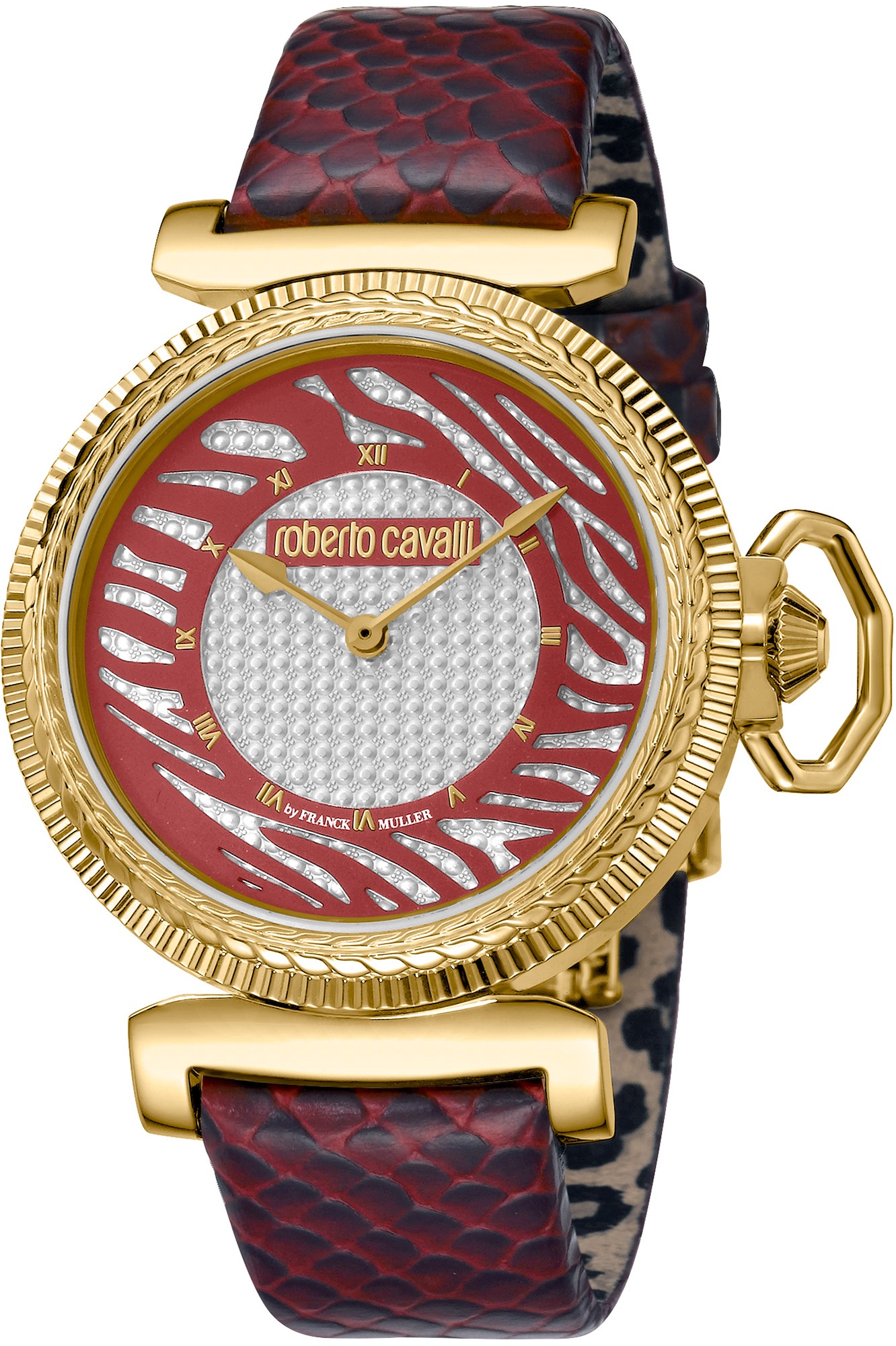 Ceasul original de dama Roberto Cavalli RV1L056L0031 face parte din categoria ceasurilor Casual. Mecanismul ceasului este unul quartz, adapostit de o carcasa de forma rotunda, cu capac opac. Carcasa ceasului este din otel inoxidabil și are culoarea . Diametrul carcasei este de 38 mm, iar grosimea de 9 mm. Ceasul Roberto Cavalli RV1L056L0031 are curea de piele de culoare roșu si cadranul analog de culoare roșu, acoperit de un geam din safir. Rezistent la apa pana la o adancime de 50 m (5 atm), ceasul dispune de urmatoarele functii: ora, minut, secunda.